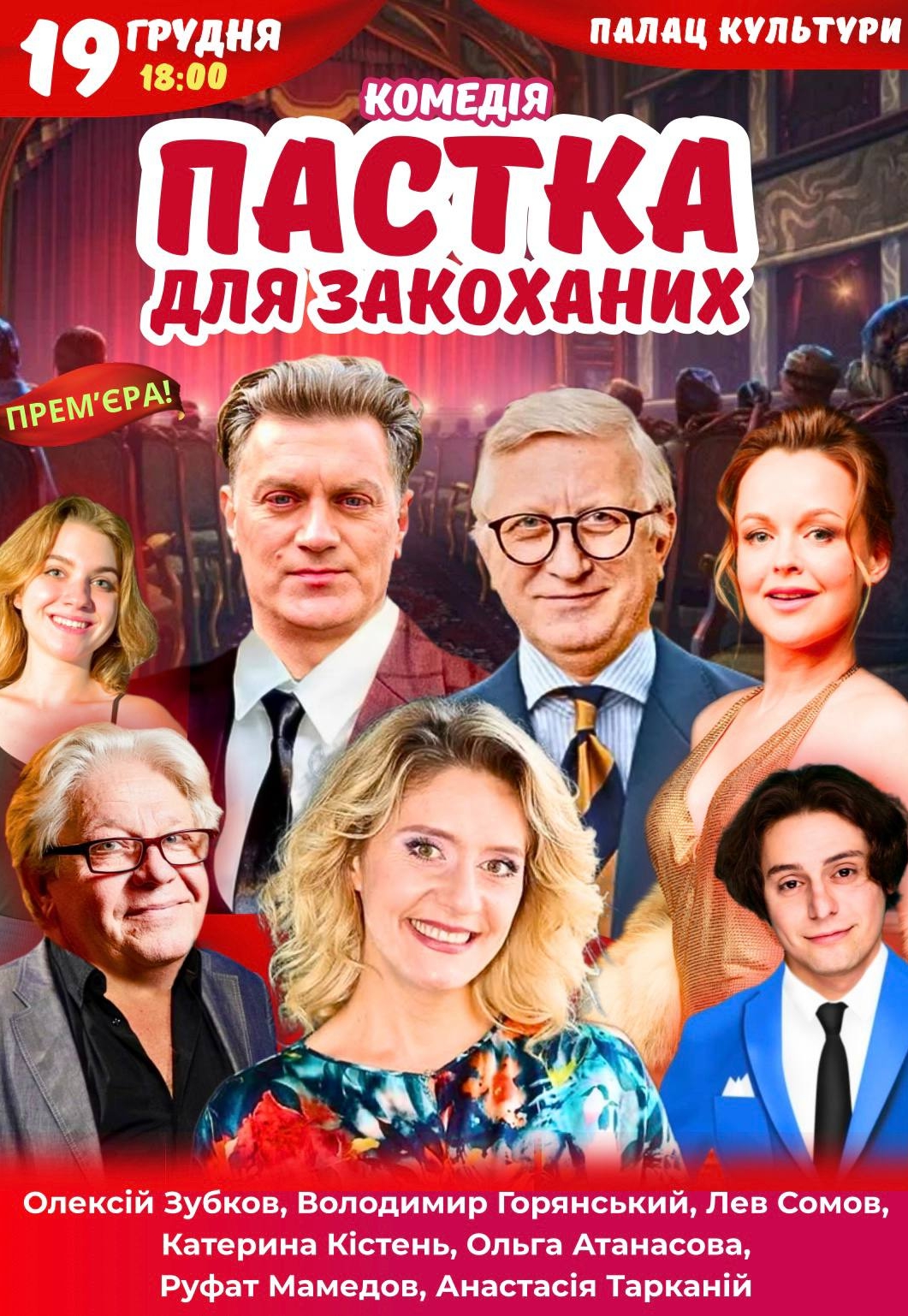 Спектакль "Ловушка для влюбленных". Премьера! состоится 19 декабря 2025, 18:00, пятница в Дворец культуры и искусств. С помощью сервиса internet-bilet.ua, Вы сможете с легкостью забронировать, заказать и купить билеты на интересующий Вас концерт, спектакль, оперу, балет, мастер-классы, спортивные и детские мероприятия, оплатив их самым удобным для Вас способом: через интернет банковской картой VISA/MasterCard, наличными или курьером, если сделаете заказ билета c доставкой.